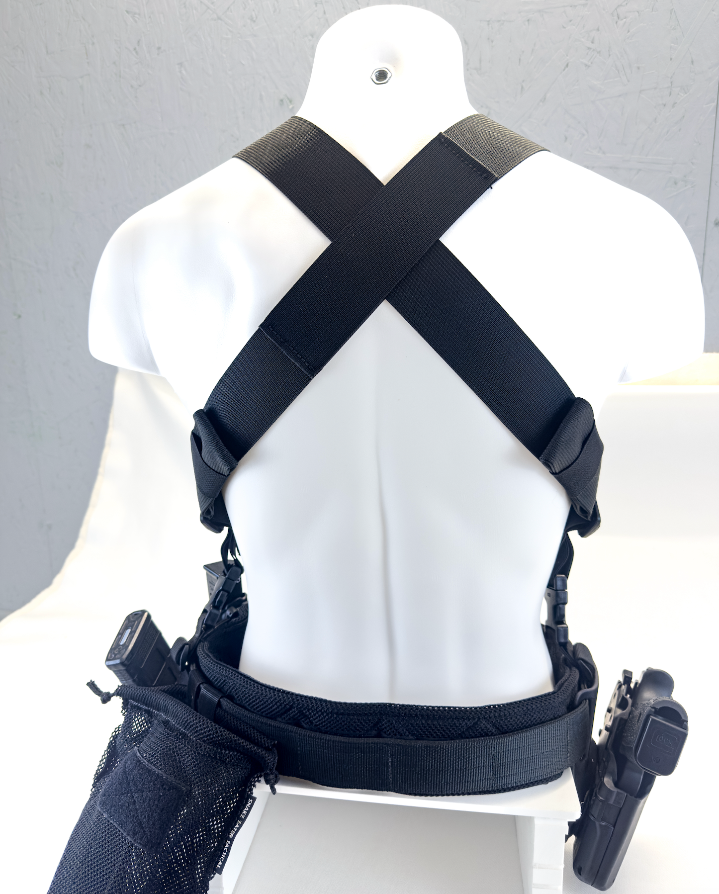 • Duty Belt Connection – Low-profile, secure attachment points that live on the duty belt, allowing the suspenders to fast-tech buckle on/off quickly and cleanly.