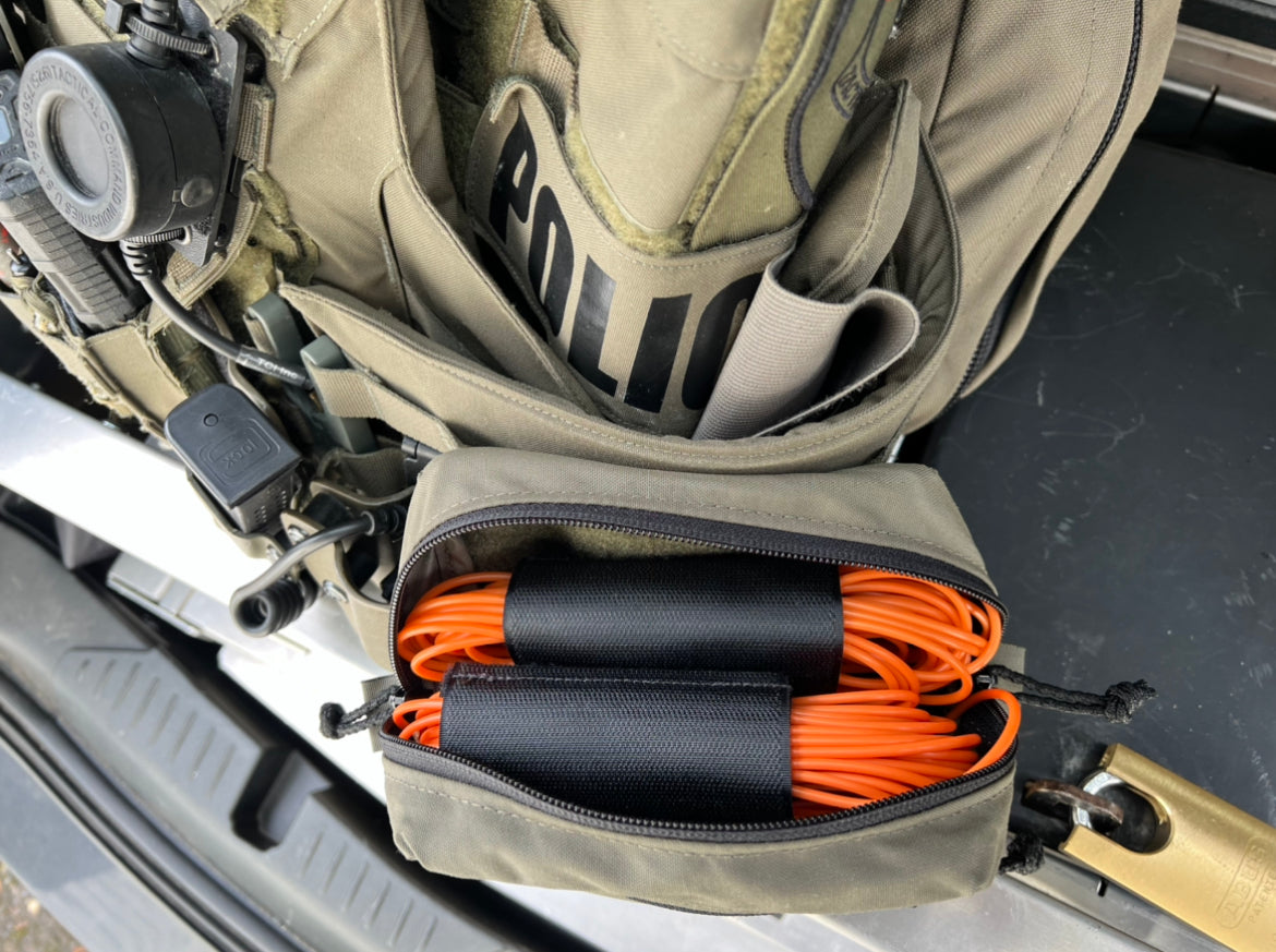 I have seen several homemade versions of this rig, and knew that we could make an RDC rig that is professional grade and reliable.  I had plenty of help in its design from breachers with many years of experience.  Our Rapid Deployment Charge includes a plug that is tethered to the handle, a cap protector and a 4" wide velcro strap to retain the shock tube.