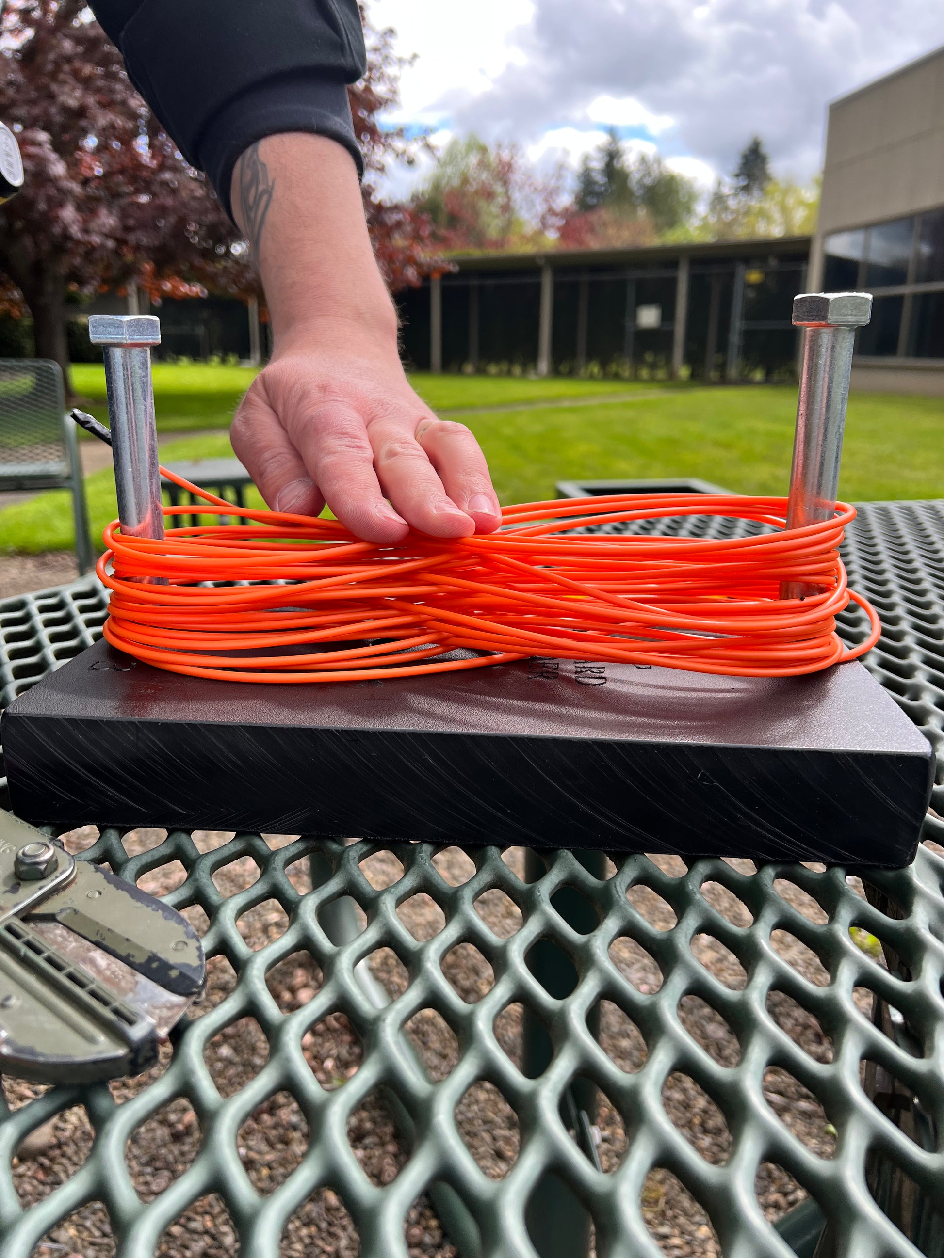 All breachers experience the joys of winding shock tube into a S-fold that won't be a rats nest to unwind when you need it.  I designed this jig so we can wind shock tube to a consistent size to fit in an RDC rig or Single primed system, without holding hands with our buddy or lassoing our fingers.   The trick with this jig is to find a balance of winding shock tube tight enough to get a nice fold but not so tight that you can't unscrew one of the bolts in order to remove the fold.  It comes with a cap protector to manage the blasting cap during the fold.